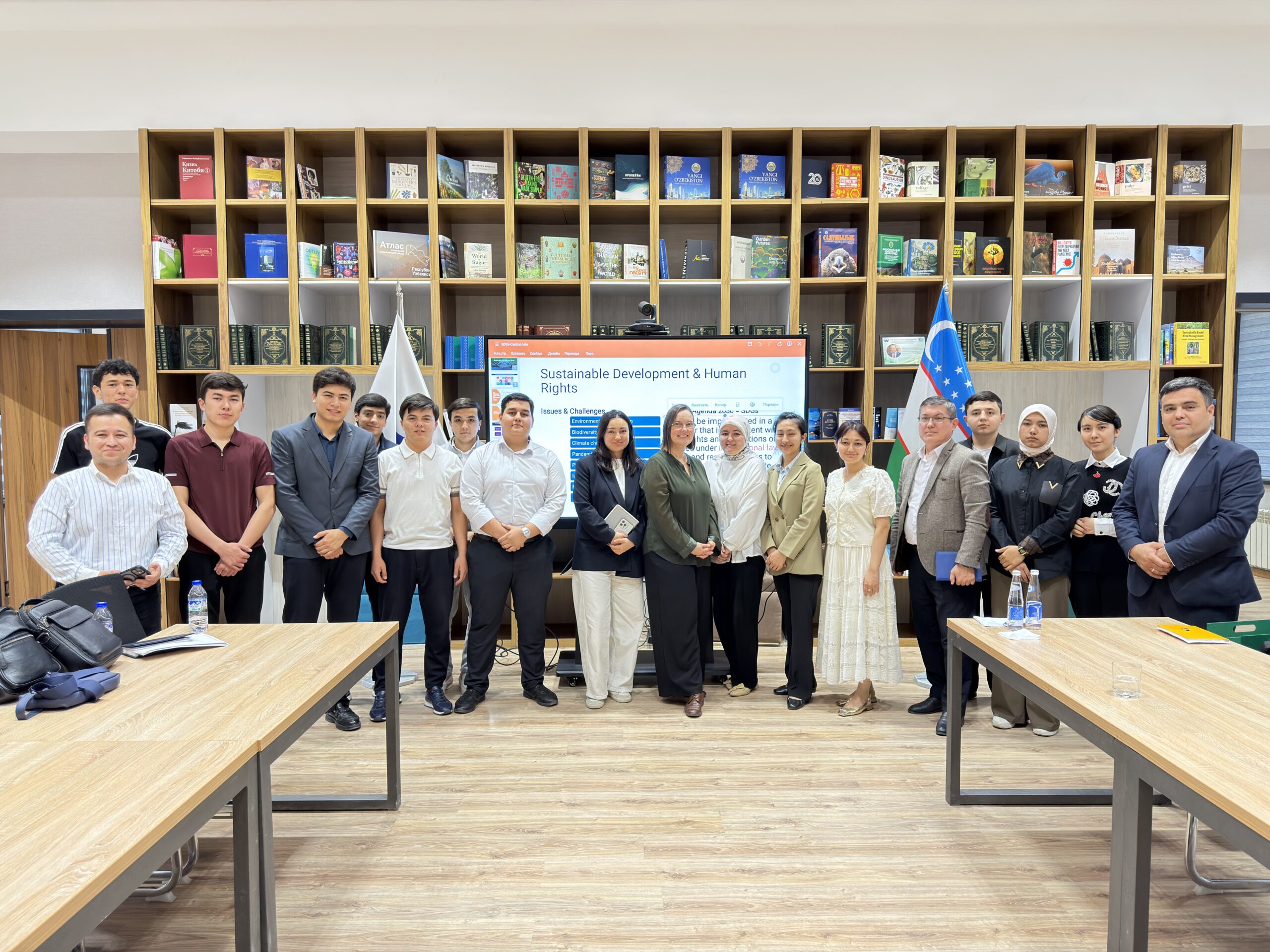 Following the meeting, Dr. Mihr delivered a guest lecture to students of the Green University and UWED on the UN Sustainable Development Goals (SDGs) in Central Asia. Students were actively engaging in the discussion and asked a number of questions on the implementation of SDGs in the region and the world, and on transitional justice. Students also had a chance to hear more about the different MA Programmes at the OSCE Academy and opportunities they provide.